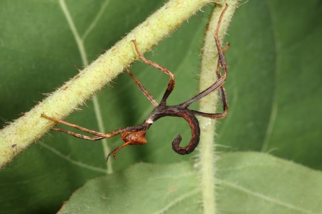 The first instar nymph is very active and walks (at up to 100mm per second) with its abdomen curled at least once over its back. It is black with an orange head and white collar, and bears a strong resemblance to ants (Leptomyrmex species) which occur within the stick insects’ natural range. The nymphs are excellent at avoiding ants and can escape even if captured by up to two ants at the same time. Newly hatched nymphs can survive for about two weeks without food but with water, and for 6-10 days without either.